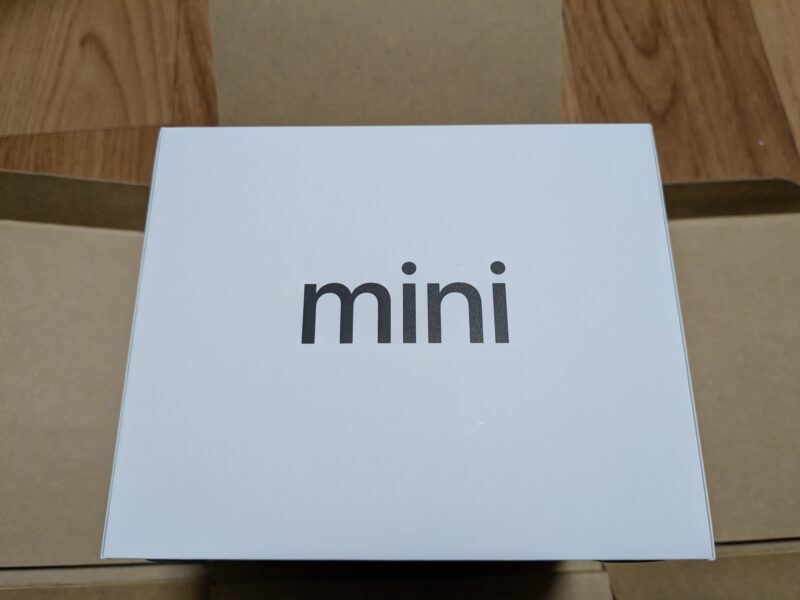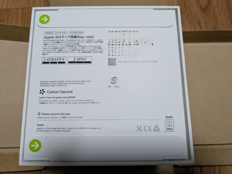 化粧箱のサイドは「Mac」、「mini」と印刷されています。